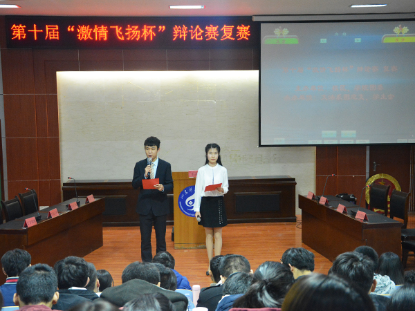 11月29日下午,由校区、学院团委主办,文法系团总支、学生会承办的第十届“激情飞扬杯”辩论赛复赛在模拟法庭顺利举行,各系学生会主席及往届辩论赛优秀辩手担任比赛评委,学生会组织负责人及学生代表观看比赛。