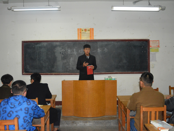 会议伊始,班长杨熙厚以传统文化月为切入点,从书的分类、书对人生的意义讲起,提出“书读百遍,其义自见”的观点。紧接着,各个宿舍代表依次走上讲台,讲述自己心中的好书。有现实蕴藉着温情的《解忧杂货铺》,有对长征精神深刻认识的《长征》。其中,《天局》蕴含的胜天半子精神更是激励着同学们不断前行。最后,杨熙厚对班会进行概括总结,并提出希望同学们多读书、读好书的期望。