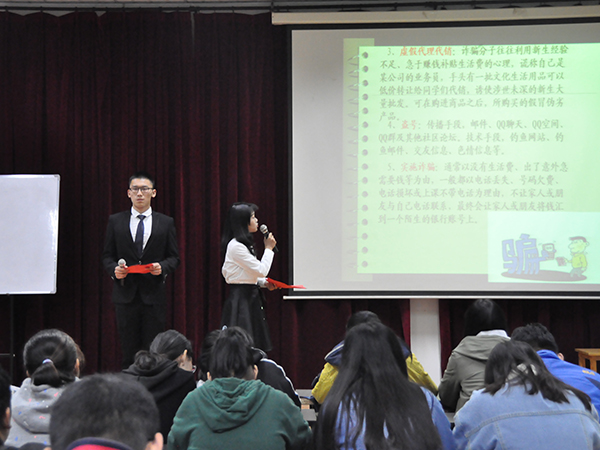 为进一步提高同学们防火、防盗、防骗的自我保护观念,提升自我防范意识,11月1日下午,由文法系团总支主办、学生会承办的防火防盗防骗视频展活动在文秘情景实训室展开。