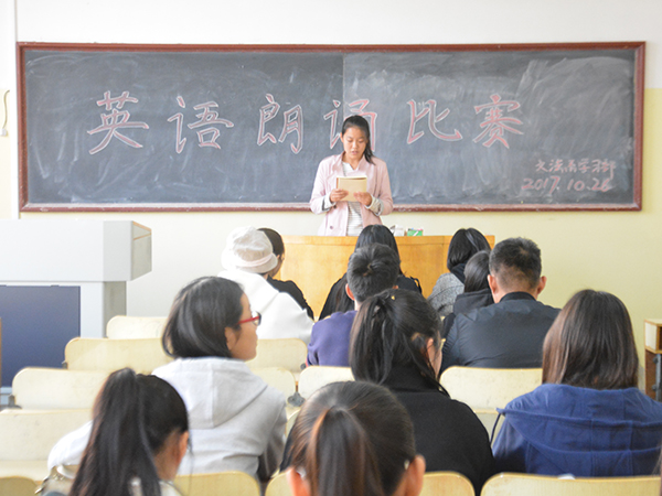 10月26日下午,由文法系团总支主办、学生会和英语协会联合承办的英语朗诵大赛在3#305举行。