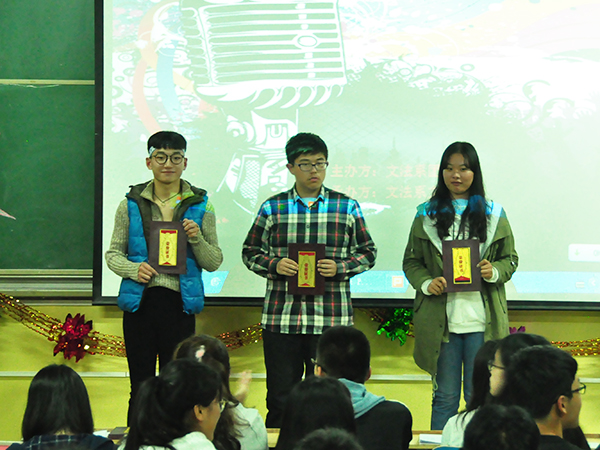 为丰富同学们的校园文化生活,营造积极向上、健康文明的校园文化氛围,10月19日下午,由文法系团总支主办、学生会承办的第十三届校园“十佳歌手”决赛在1C103举行。
