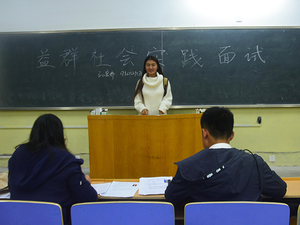10月17日晚,益群学生干部成长营纳新面试在各教室展开。此次纳新面试由文法系团总支及学生会各部门合作组织,益群学生干部成长营各组组长担任评委,活动得到新生的热烈响应。