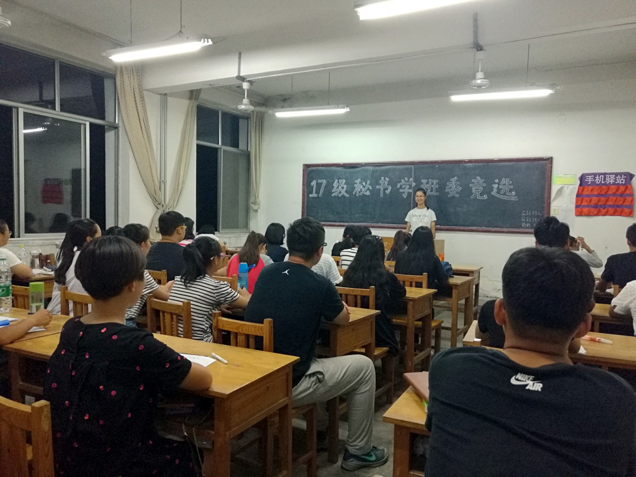 为进一步落实党的群团工作会议精神,推进班团一体化建设,以问题为导向,探索解决基层团组织薄弱,吸引力不强、凝聚力不够等问题,将班级建设成为学风优良、纪律严明、团结向上的学生集体,9月23-24日,文法系2017级各新生班级在自习室开展班团支委学生干部竞选工作。