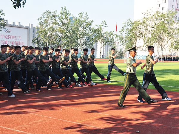 经过近两周的训练,我们已经可以正式“上路”了,踢腿摆臂,动作规范。