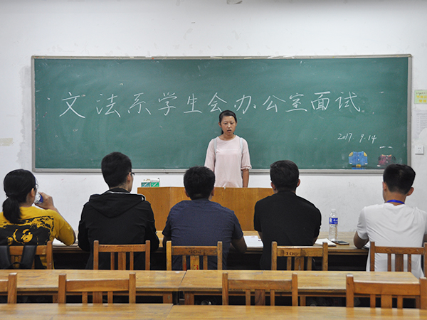 近日,文法系学生会各部门在五号楼如期开展纳新面试活动。