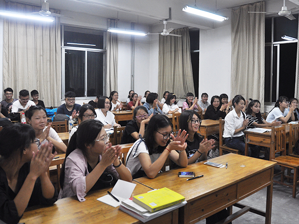 9月9日晚,文法系17级新生在各指定自习室中举行入学的第一次班会,本次班会由各班级学生兼职辅导员主持。