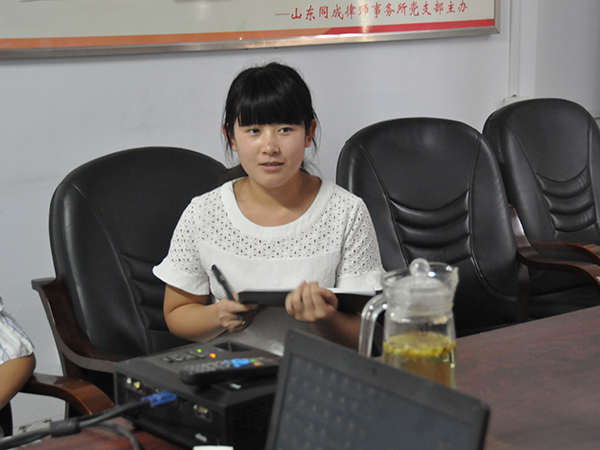会议上,于主任首先强调,召开此次会议的目的在于充分沟通律师和实习成员之间的不同观点和看法,相互交流,以达到互利共赢的良好结果。随后,六位实习成员敞开心扉,将两周以来自己的所看、所想、所闻、所感进行总结,并分享给大家,并表明自己后两周工作的重点及主攻方向。