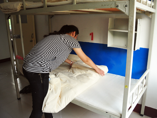 收拾宿舍,铺好被褥,一切都是崭新的!