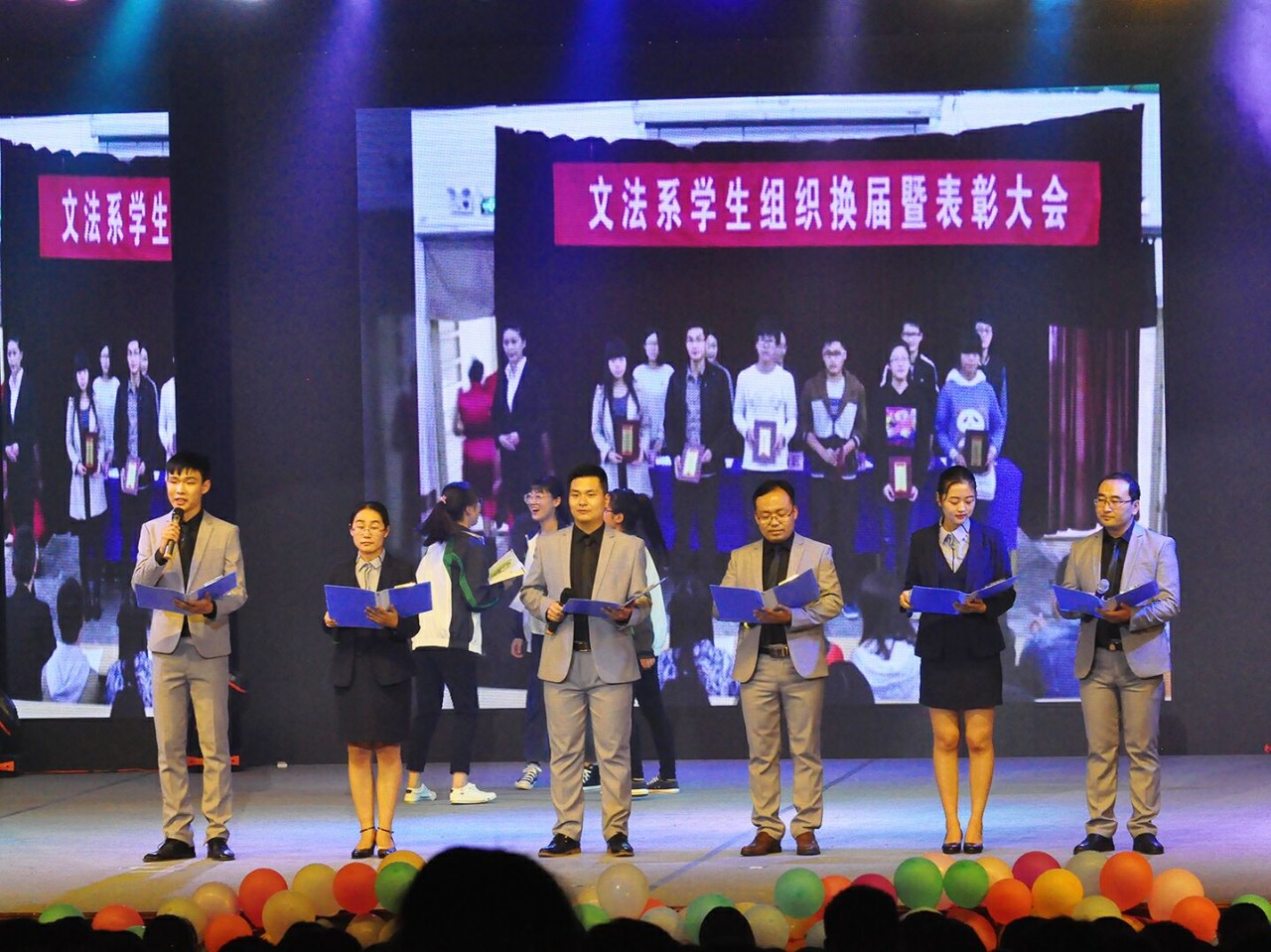 为给毕业生留下最美的回忆,为了在晚会中完美的展现,文法系领导及老师高度重视师生朗诵节目,团总支老师、“益群学生干部成长营”文体组、朗诵协会成立专门讨论小组,多次就朗诵稿进行讨论,最终,确定朗诵稿送分为两部分,前半部分回忆,后半部分抒情。团总支书记郭涛林谈到:“关于回忆这一部分,我们是让一些优秀的毕业生写了几段以‘我记得…’的这种形式回忆了在科大的点点滴滴,包括景、人以及发生的一些故事,并结合我们的科大特色,以情动人。”此外,为了使朗诵达到最佳,通过“2017届毕业生QQ交流群”和微信群征集每一位毕业生的意见和建议,不断润色打磨,使朗诵更加朴实无华,真挚诚恳。