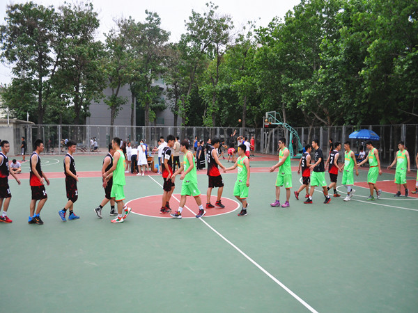 无兄弟,不篮球。文法系男篮球员赛前在一起加油呐喊,兄弟齐心,其利断金!