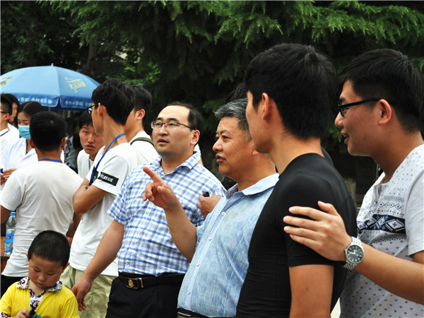 文法系党总支副书记兼副主任刘相明、团总支刘明远老师来督战篮球赛。