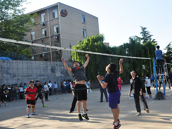 比赛前,老师们提前到场地热身,试练,讨论战术,加油打气,以提高整支队伍的配合默契度;比赛中,队员们更是使出浑身解数,主攻、二攻手默契配合,奔跑跳跃、互相补位,网前扣杀、网上拦截,有力发球、垫球传球,汗湿的衣服、响亮的口号,是老师们竭尽全力的表现;一个个精彩的扣球,一次次起跳拦网,让在场的观众欢呼不已,整场比赛异常精彩,充满呐喊、助威、喝彩与活力。场外,学生们高声的呐喊声为老师们鼓劲。