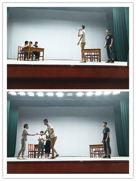 确定好人员后便是无数次的排练过程,从最初的道具不齐、人员懈怠到逐渐相互提意见、指出瑕疵,队伍在磨合中逐渐明确方向。动作台词不熟练台下反复练习,灯光道具不到位反复沟通,剧本生硬不成熟反复推敲。为更好的演出效果,同学们还研究了相关电视剧片段,试图寻找类似人物性格,充实细节,小到说话的语气、走路的姿势,大到音乐的选择、灯光的设置,同学们也都一一琢磨。