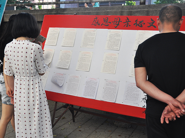 近日,由校区、学院团委主办的“感恩母亲”心理征文比赛落下帷幕,20篇优秀作品在礼堂前展出。其中,文法系学生积极参赛,刘珊珊等13名同学的作品入围展出。
