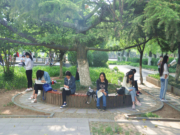 清晨,校园的鹰湖生机盎然,一阵阵洪亮的晨读声拉开了科大学子崭新的一天 “Where there is a will,there is a way”,六点半左右,英语协会的会员们结合手机APP,开始背单词、练习口语发音,备战英语四、六级。 “安于现状不是我的个性,碌碌无为不是我的目标,”一位大三备战考研的学生谈到。 积微成著,累足成步,温故而知新,专业课知识应及时复习! (文:袁华蕊 张娜娜 图:于斐)