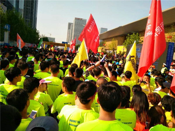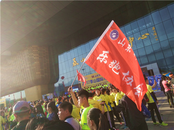 4月23日,第四届泰山国际马拉松成功举办,文法系乐跑协会50余名成员参加并顺利完赛。 早晨六点二十集合,苏磊老师给大家讲解比赛注意事项。 不管在哪里,乐跑的旗子依旧如此鲜艳。 到达泰山国际会展中心,大家一起合影留念。 人山人海抵挡不住跑步的热情。 泰山脚下勇敢跑,转山祈福福禄至。 一起跑,不放弃,兄弟,加油! 戴上奖牌,我是最棒的!(文/图:于斐 杨鲁蒙)
