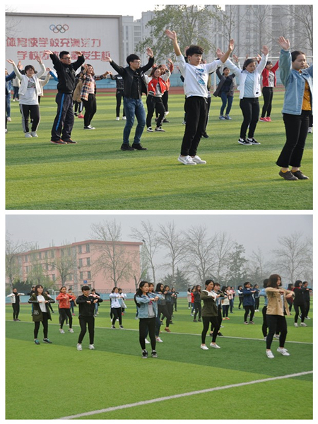 “我是男生,我也舞的很美”。步调的不统一、动作的不协调,也难敌同学们成百上千次的练习。 一次次的抬手,一次次的定格,即使肌肉酸痛、全身疲惫,在坚强的意志下,这都不算什么。