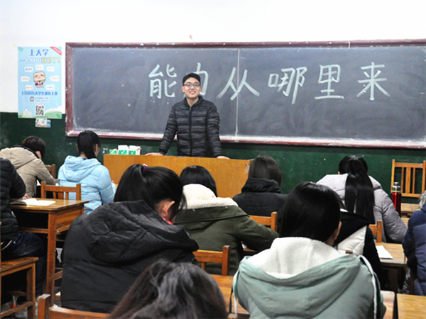 12月4日晚,文法系新生班级在自习室内召开“能力从哪里来”的主题班会,各班班委担任主持人。