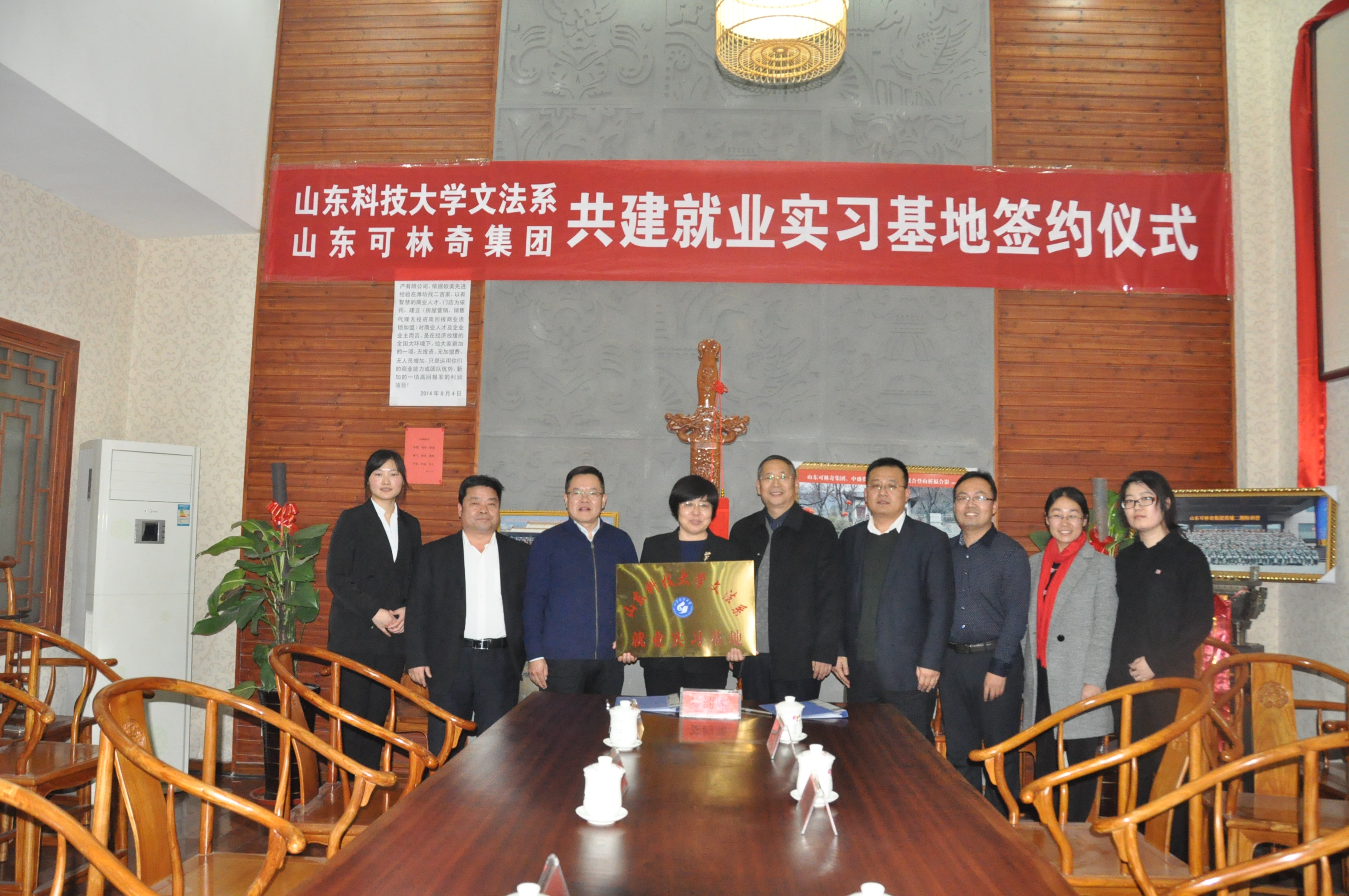 12月1日,文法系大学生就业实习基地签约及挂牌仪式在山东可林奇集团公司举行。潍坊经济开发区组织人事部常务副部长李岩、文法系党总支书记马福泉、可林奇集团副总经理马希军、总工程师胡吉锋、人力资源总监唐培贞、文法系团总支书记郭涛林、团总支老师郭艳培等相关负责人出席了签约挂牌仪式。