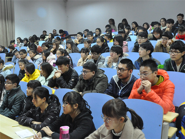 文法系团总支老师刘明远简单介绍了我系本次司法考试通过率的情况,并对在座同学提出了殷切期望。本次活动主要分为经验交流和同学提问两个环节。在第一环节,杨智从自身学习经历、司考流程、复习过程三部分讲了自己的看法。他认为司考是所有法律人都必须过的一道坎,并着重强调了时间安排的重要性,希望同学们避免“拖延症”。张蕾则为我们讲述她的司考攻略,对制定学习计划、备战时间、心理调节等具体方面表达了看法,并告诉大家只有付出努力才会有收获。在第二环节,大家都积极发问,交流会现场气氛活跃。