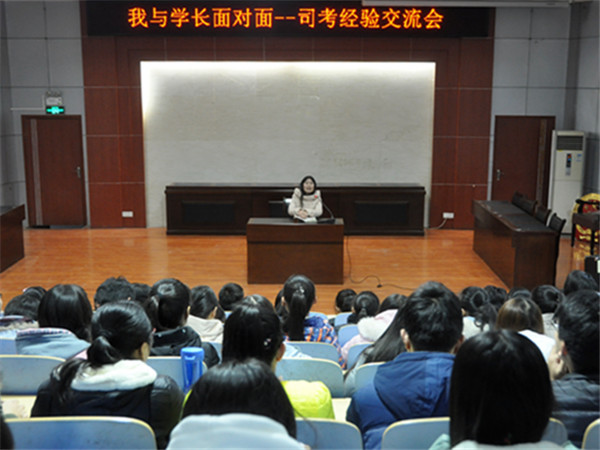 12月2日下午,由文法系团总支主办、学生会承办的司法考试经验交流会在模拟法庭举行。会议邀请了2016年通过国家司法考试的张蕾、杨智同学交流经验,系15级、16级全体法学专业学生参加。