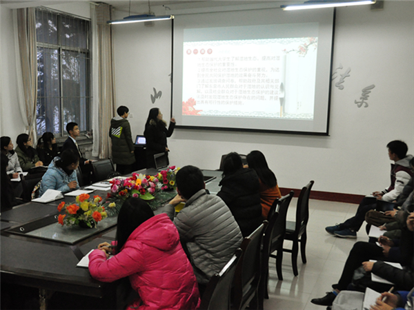 文法系团总支书记郭涛林首先带领大家学习了习近平总书记关于大学生社会实践方面的重要讲话精神和教育部《学生志愿服务管理暂行办法》以及学校志愿服务方面有关文件精神。接着他简要介绍了自己对社会实践活动重要性的理解,如果把学风建设比作一体的话,社会实践和科技创新就如鸟之两翼,学风建设是根本,社会实践和科技创新活动对学风建设和学生综合素养的提高有较大的促进作用。他鼓励同学们努力做到知行合一,在实践中培养社会责任感。