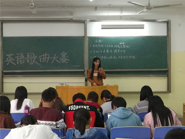 为了繁荣校园文化生活,激发同学们对英语的学习兴趣,10月12日下午,由文法系团总支主办,学生会学习部和英语协会联合承办的英语歌曲大赛在2#308成功举办。