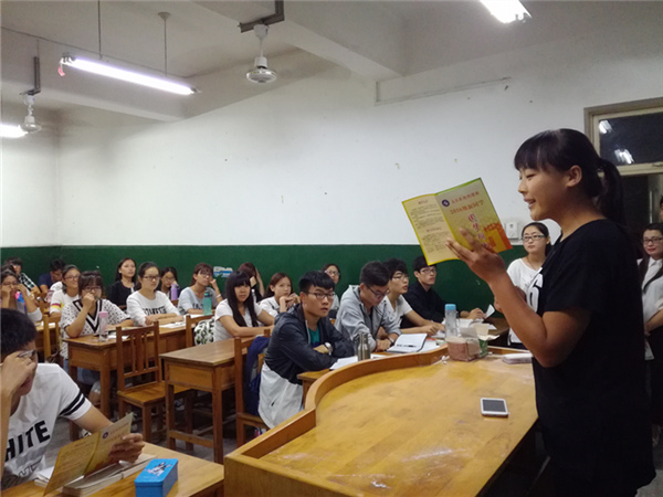 为了方便2016级学生了解学生会的工作,9月12日晚,文法系学生会到新生固定自习室开展宣传活动,各个部门的主要负责人参加了此次活动。