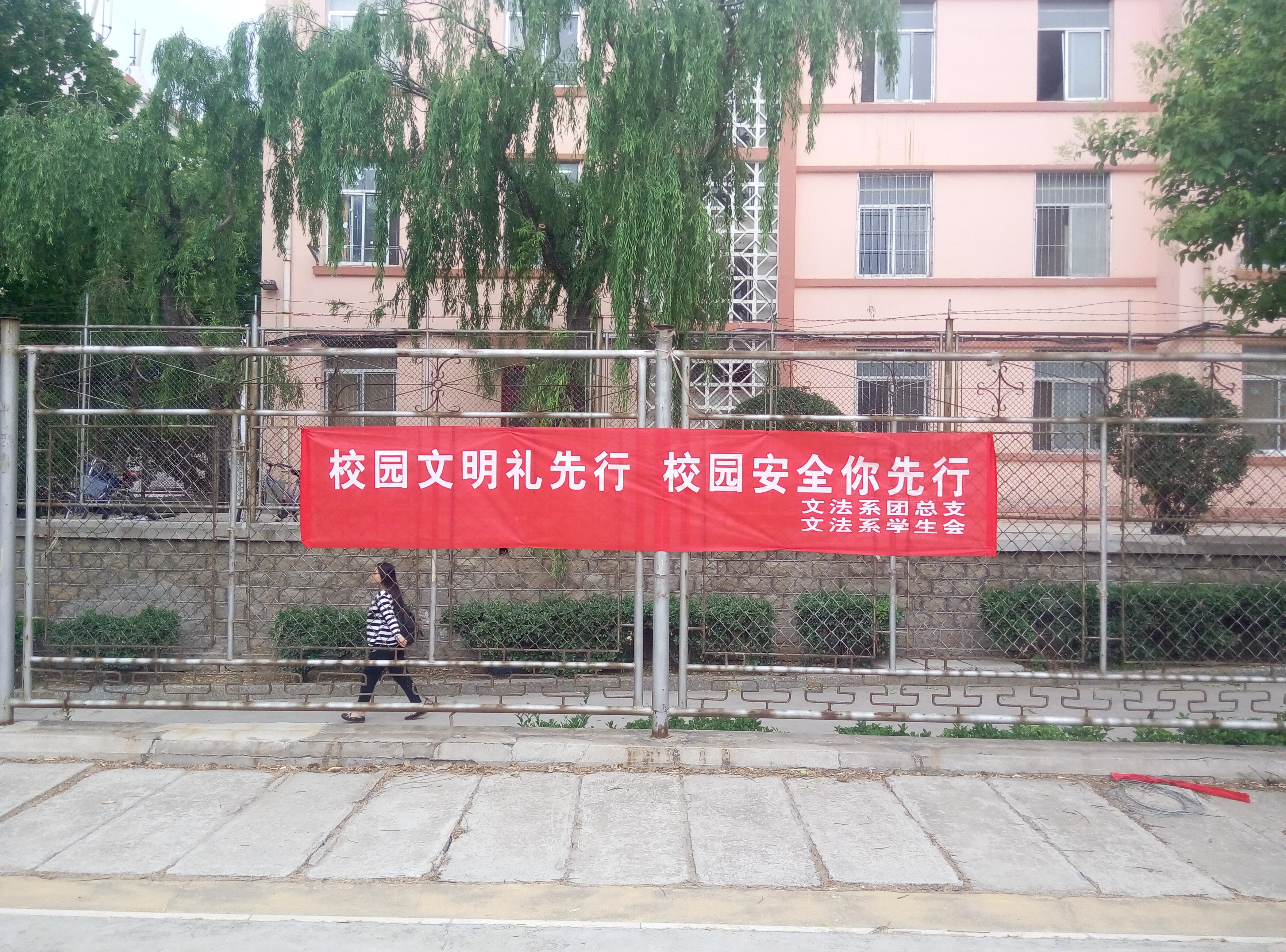 为进一步增强广大学生的安全文明意识,努力营造安全、文明、有序、和谐的生活环境,近期,文法系认真落实校区、学院“与文明携手,创安全校园”为主题的教育活动。
