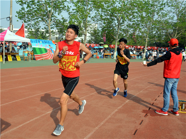 0329王硕在甲组男子5000米比赛中获第三名