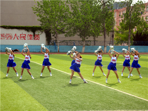 伴随着清新炫丽的音乐,文法系代表队用动感的舞步让青春的活力在赛场蔓延,用矫健的身姿支撑起青春的力量,用热情的笑容展现青春的激情,一次次赢得观众的掌声呐喊声。九个姑娘身着蓝白相间的队服,手持炫丽的花环,裹挟着青春的气息扑面而来,从整齐划一的动作到高难度的变换,队员之间配合默契,充分体现了文法系良好的精神面貌。精彩的背后是从舞蹈编排音乐选择到整体构思动作推敲的艰苦付出,更是展现出文法系学生的智慧和创造力,她们用灵动的音符跳出青春的旋律,用梦想谱写自由的篇章。