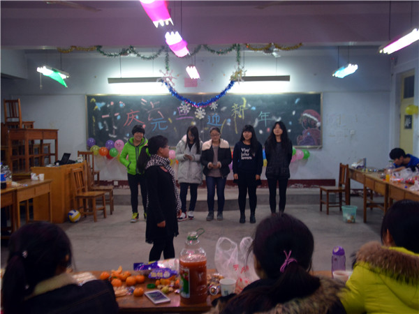 12月25日晚,文法系各新生班级在固定自习室举办“庆元旦,迎新年”晚会,同学们欢聚一堂,共同期待新年的到来。