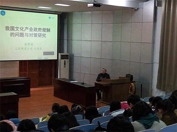 为使同学们更加深入了解我国文化产业政府规制方面的知识,11月26日,文法系特邀张秉福教授在模拟法庭作题为“关于我国文化产业政府规制的问题与对策研究”的讲座。
