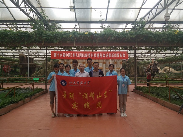 9月1日,文法系暑期“新农村建设”调研团在东七社区支部副书记、主任苏东坤的带领下实地参观了寿光市蔬菜高科技示范园——寿光国际蔬菜博览会展厅。