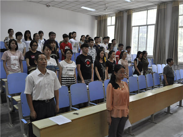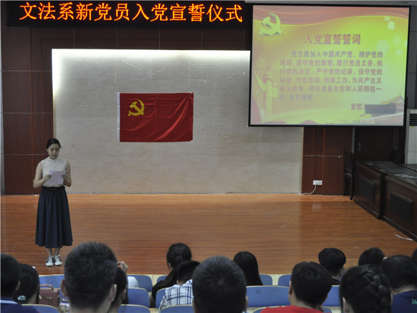 6月18日下午,文法系在模拟法庭成功举行“新党员入党宣誓仪式暨老党员重温入党誓词”仪式。宣誓仪式由文法系团总支郭艳培老师主持。