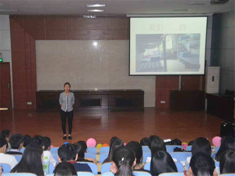 经过层层筛选,共有10个宿舍进行展示,分别来自法学,行管,秘书学和文秘四个专业。在活动中,各宿舍的PPT均是精益求精,别出心裁。用不一样的视角来展示自己的温馨宿舍。幽默诙谐的语言,优雅婉转的背景音乐,栩栩如生的照片,将观众们瞬间拉入其乐融融、相亲相爱的宿舍氛围。而充满新意的舍标设计,克己守则的舍规规定,都显示出了大家对于自己宿舍的守护与管理、对舍员的尊重与友爱。其中,有的宿舍将宿舍的荣誉着重标注具体讲解,有的宿舍将宿舍成员或调侃,或关心般介绍给大家,有的则将宿舍平日参加的小活动分享展示,在轻松愉快的氛围里,观众们能体会到紧密而又不能割舍的浓浓舍友情。舍长们真诚地说道,时光给予最好的礼物就是现在与舍友们的相知相伴,朝夕相处。而这一句话引起了同学们内心共鸣,引发掌声阵阵。