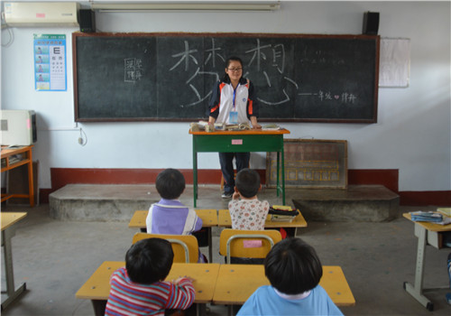 到达大王小学后,“律舟”志愿服务队成员分别以“法制宣传”、“持之以恒”和“大学梦”三个主题为小学生讲课。志愿者首先以“梦想”为主题结合自身逐梦过程讲述了“什么是梦想”“怎样实现梦想”,并让小学生们把自己的梦想写下来,警察、老师、医生等一个个鲜活的职业梦想跃然纸上,通过汉字和拼音完美展现,诠释了小学生们对美好未来的憧憬与展望。接下来,志愿者们向小学生们宣传了基本法律知识和春季防火等与日常生活相关的常识,让小学生们充分了解基本法律知识和自我保护的方法,课堂气氛非常活跃,掌声、欢呼声此起彼伏。课外活动时间,志愿者们和小学生进行游戏互动,舞动的双手、奔跑的步伐,展示着小学生和大学生的童真与青春。最后,文法系师生把精心准备的文具和体育用品等送给了小学生。