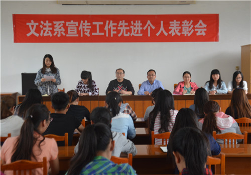4月29日,文法系新闻社在行政楼301会议室召开宣传工作先进个人表彰会。文法系团总支老师、班级主要学生干部及全体新闻社成员参加了此次会议。