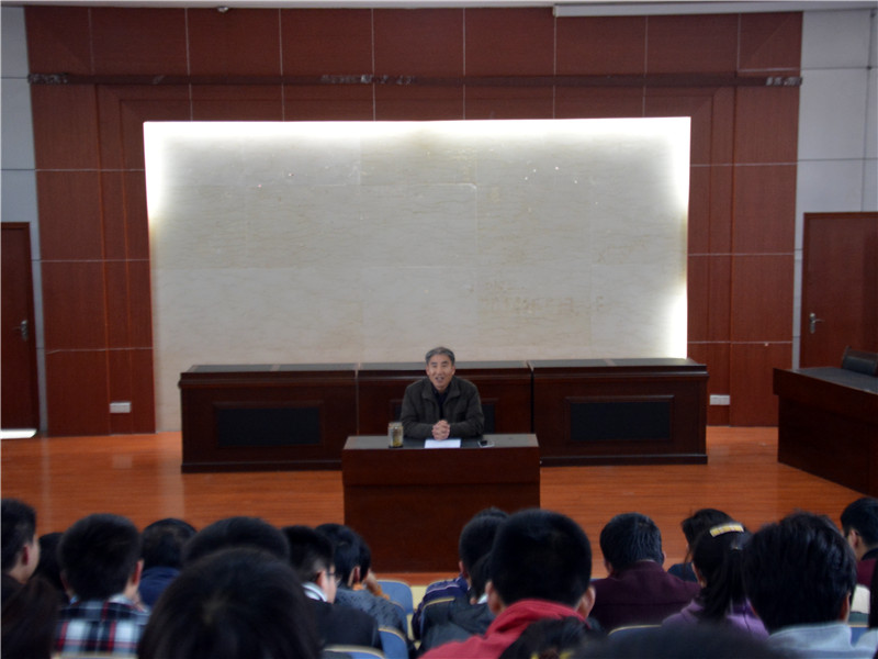 3月26日,文法系主任张学银在模拟法庭召开了法学专业考研指导会,2012级法学专业全体学生参加了此次会议。