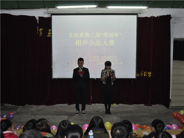 为丰富校园生活,活跃校园文化。12月7日晚,由文法系团总支主办,学生会承办第三届“笑语杯” 相声小品大赛在八角楼火热上演。文法系各学生组织负责人参加了本次活动。