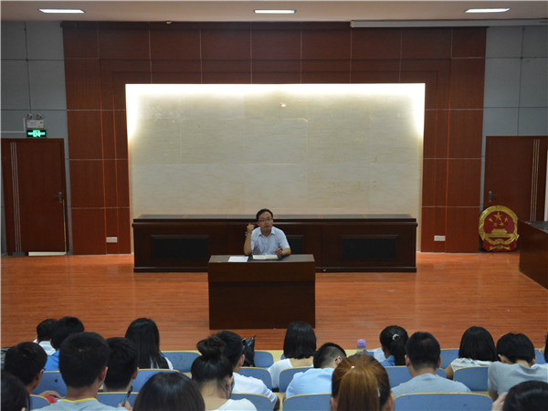 2014年7月9日,文法系暑期“三下乡”社会实践活动启动仪式在模拟法庭成功举行,院系重点团队指导教师和团队全体成员等40余人参加了启动仪式。