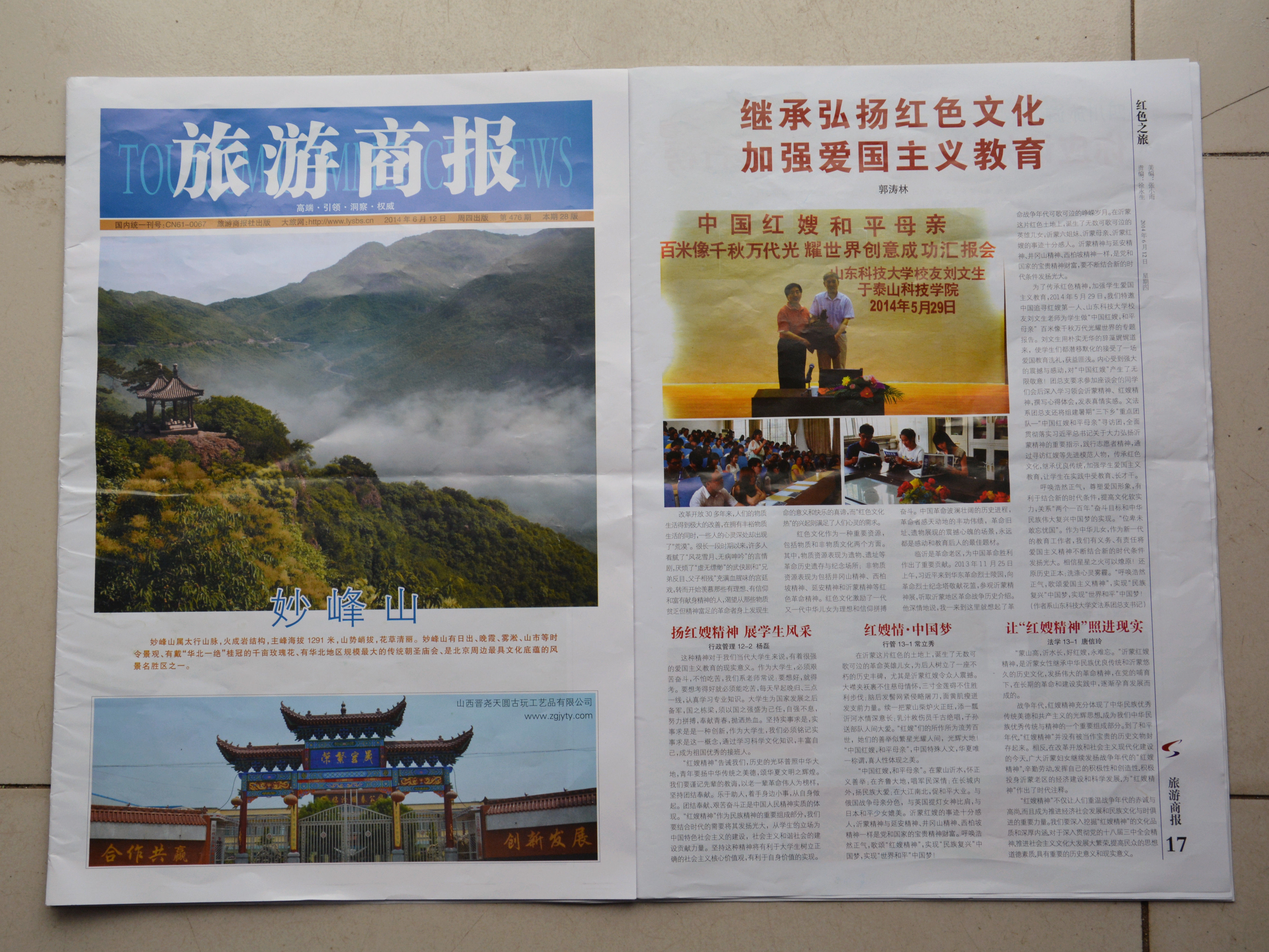 另外,我系学生杨磊、常立秀和唐信玲等撰写的“红嫂精神”心得体会也在《旅游商报》上发表。(作者:张蕾 姚欣欣 摄影:李春华)