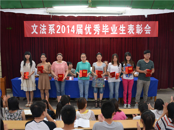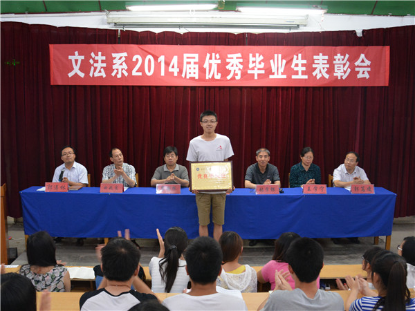 6月17日下午,文法系在八角楼召开了2014届优秀毕业生表彰大会,隆重表彰毕业生先进集体和个人。