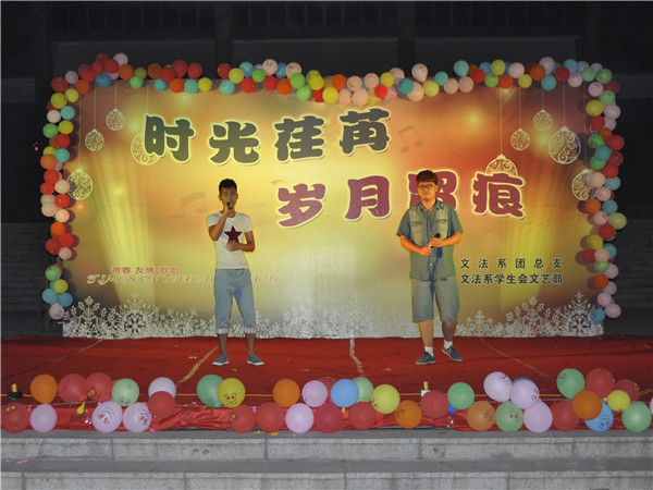 为了丰富校园文化生活,欢送2014届毕业生,6月14日,由文法系团总支主办、文法系文艺部承办的“时光荏苒,岁月留痕”主题周末文化广场活动在礼堂前成功举办,本次活动也是第三届“我与学长面对面”系列活动之一。