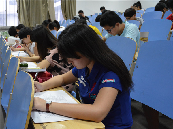 活动过程中,现场秩序井然。同学们态度端正、全神贯注地答题,面对容易题时也不掉以轻心,面对难题时沉着冷静。最后,同学们都交上了自己完美的答卷。成功都是属于有准备的人!本次活动为高年级同学提供了一个热身的机会,对做题的顺序和时间的分配上等都做了优化的调整,保证了高效地答题。同时,本次活动也吸引了众多大一学生的参与,部分同学反映,通过本次活动对英语四级试题的题型、试卷布局和分值分布有了更深一步的了解与认识,在以后的备考中有了方向性和目的性。(作者:常立秀 摄影:宋頔 耿燕)