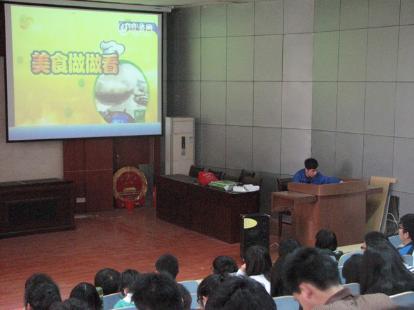 本次活动主要以视频的形式向大家展示和介绍泰安的特色名吃,如:“泰山三美”、“泰山白糕”等,沁人心脾的美食驻足在观众心间,华美动听的解说将美食披上3D面纱,不禁让在场的垂涎三尺、回味无穷。活动最后,着重强调了食品安全问题,希望大家在追求舌尖上美食的同时也应该注重“舌尖上的安全”。