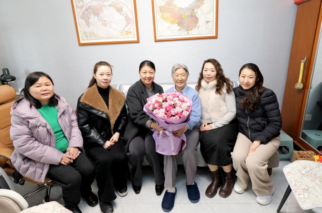 在张荷英书记家中,办公室女教职工与她亲切交谈,询问她的身体状况和生活情况,并介绍了校区近期的发展变化和取得的发展成绩,认真听取她对校区工作的意见和建议。张荷英书记对大家表示感谢,对校区各项事业取得的新进展、新成就感到高兴,表示将一如既往关注和支持校区工作,继续发挥余热,为学校和校区高质量发展建言献策。